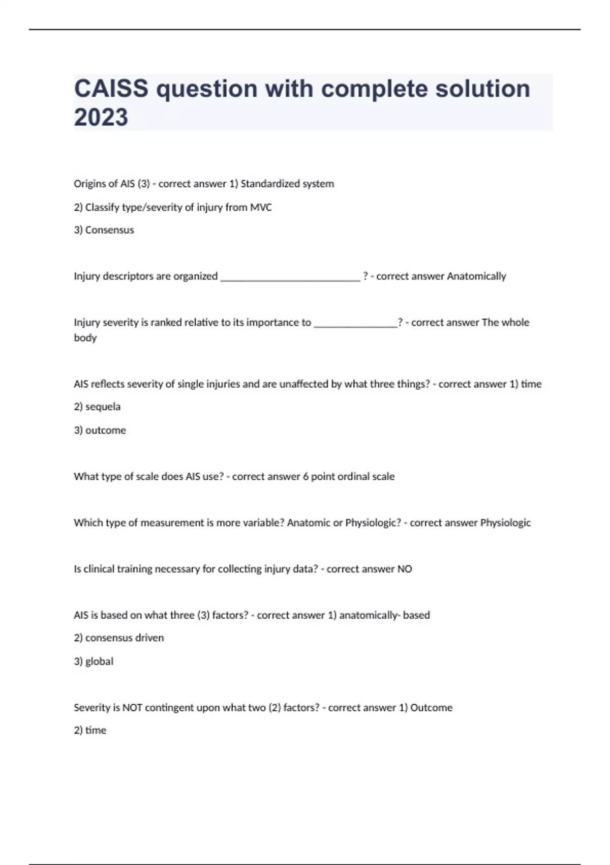 1 Exam (elaborations) CAISS Exam questions 100%correctly answered 2023 verified 2 Exam (elaborations) CAISS CERTIFICATION STUDY GUIDE rated A 2023 3 Exam (elaborations) CAISS – Thorax question & answers 2023 updated to pass 4 Exam (elaborations) CAISS Course Video Contents fully solved 2023 5 Exam (elaborations) CAISS – External questions & an