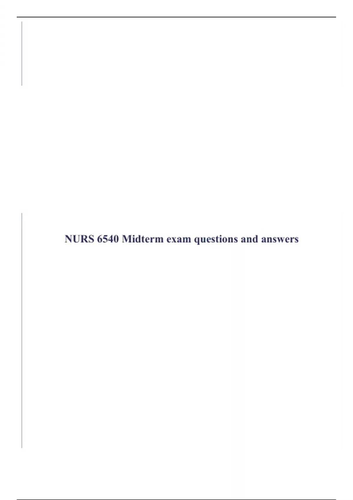1 Exam (elaborations) NURS 6540 Midterm Tassy questions and answers 2 Exam (elaborations) NURS 6540 Week 6 midterm exam questions and answers 2023 edition 3 Exam (elaborations) Nurs 6540 final exam week 11 correct questions and answers 4 Exam (elaborations) NURS 6540: Women’s Health. FINAL EXAM. QUESTIONS & ANSWERS (Latest 2023 edition). 5 Exam