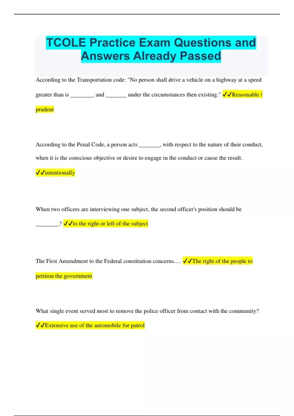 TCOLE PRACTICE EXAM QUESTIONS AND ANSWERS 100% PASS
