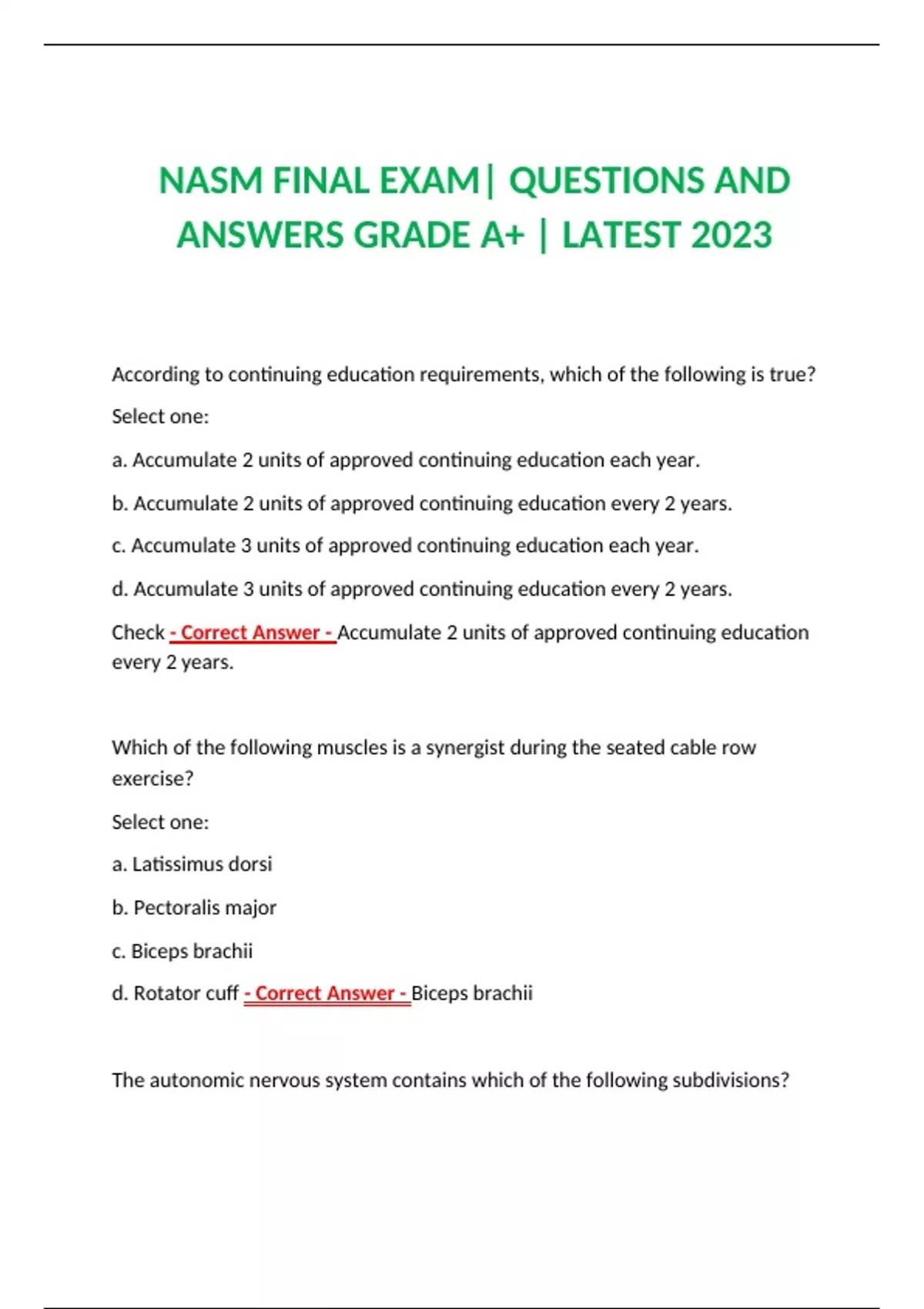 NASM FINAL EXAM| QUESTIONS AND ANSWERS GRADE A+ | LATEST 2023