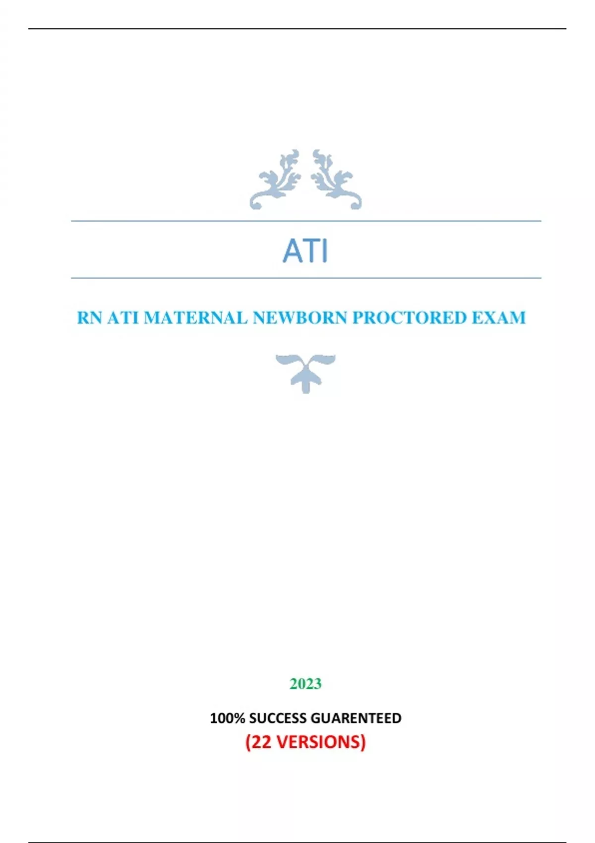 ATI RN MATERNAL NEWBORN PROCTORED EXAM (NEW 2023, 22 VERSIONS) / RN MATERNAL NEWBORN ATI PROCTORED EXAM (NEW 2023, 22 VERSIONS) /RN MATERNAL NEWBORN PROCTORED ATI EXAM:100% CORRECT