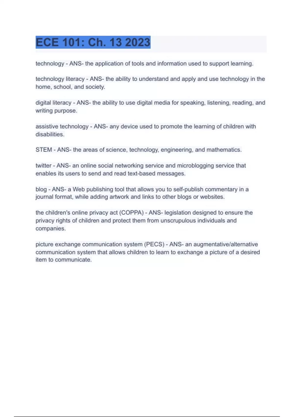 ECE Chapter 13 2023 QUESTION AND ANSWERS FULL SOLUTION