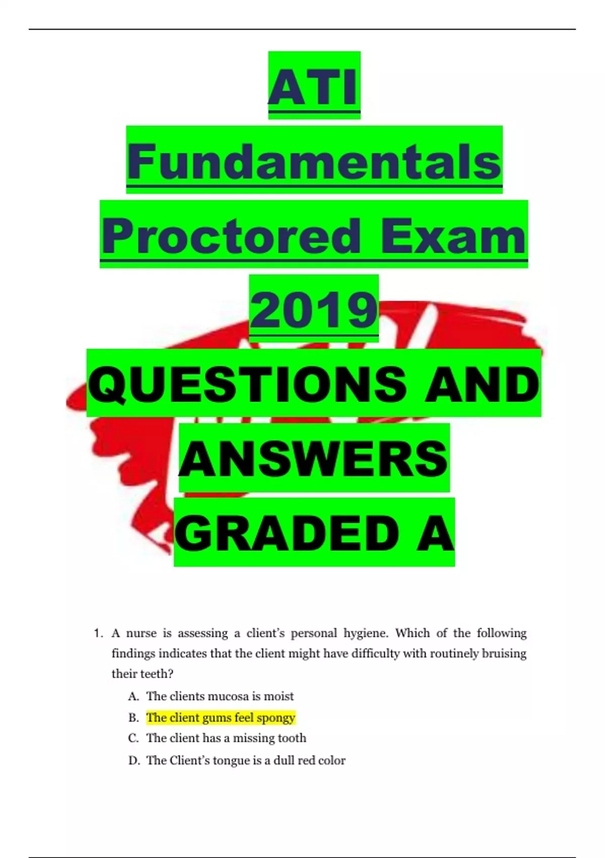 ATI Fundamentals Proctored Exam 2019 QUESTIONS AND ANSWERS GRADED A