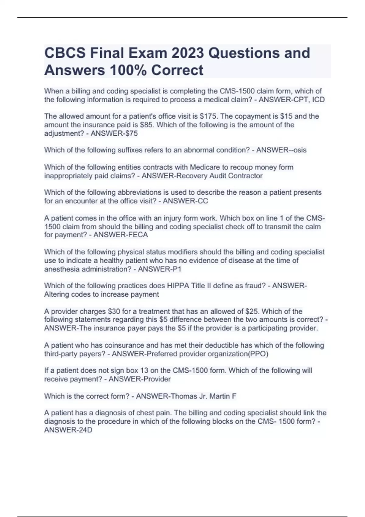 NHA CBCS/ CBCS EXAM STUDY BUNDLE PACK WITH 100% CORRECT NHA CBCS/ CBCS EXAM STUDY BUNDLE PACK WITH 100% CORRECT