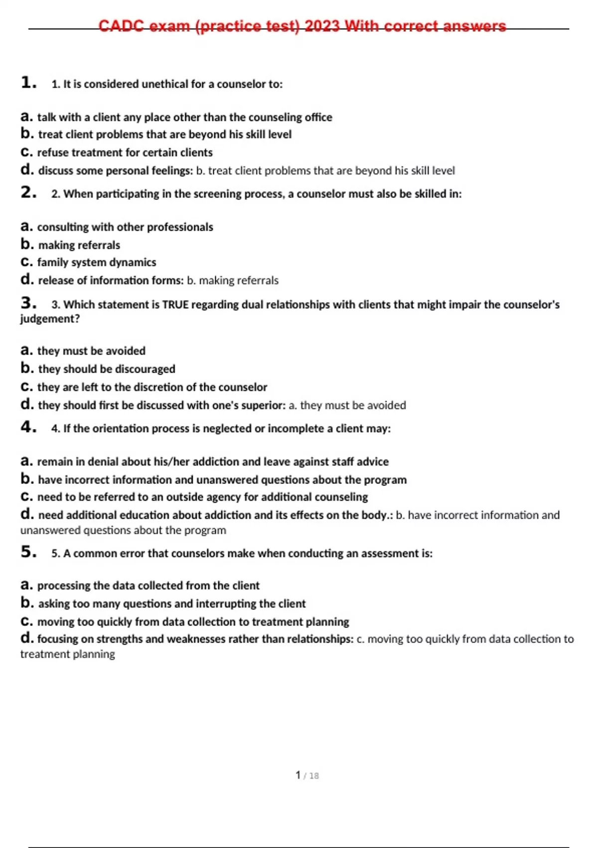 CADC practice exams 1,2,3 ,4 / CADC sample Exam package deal (Download to score an A+)