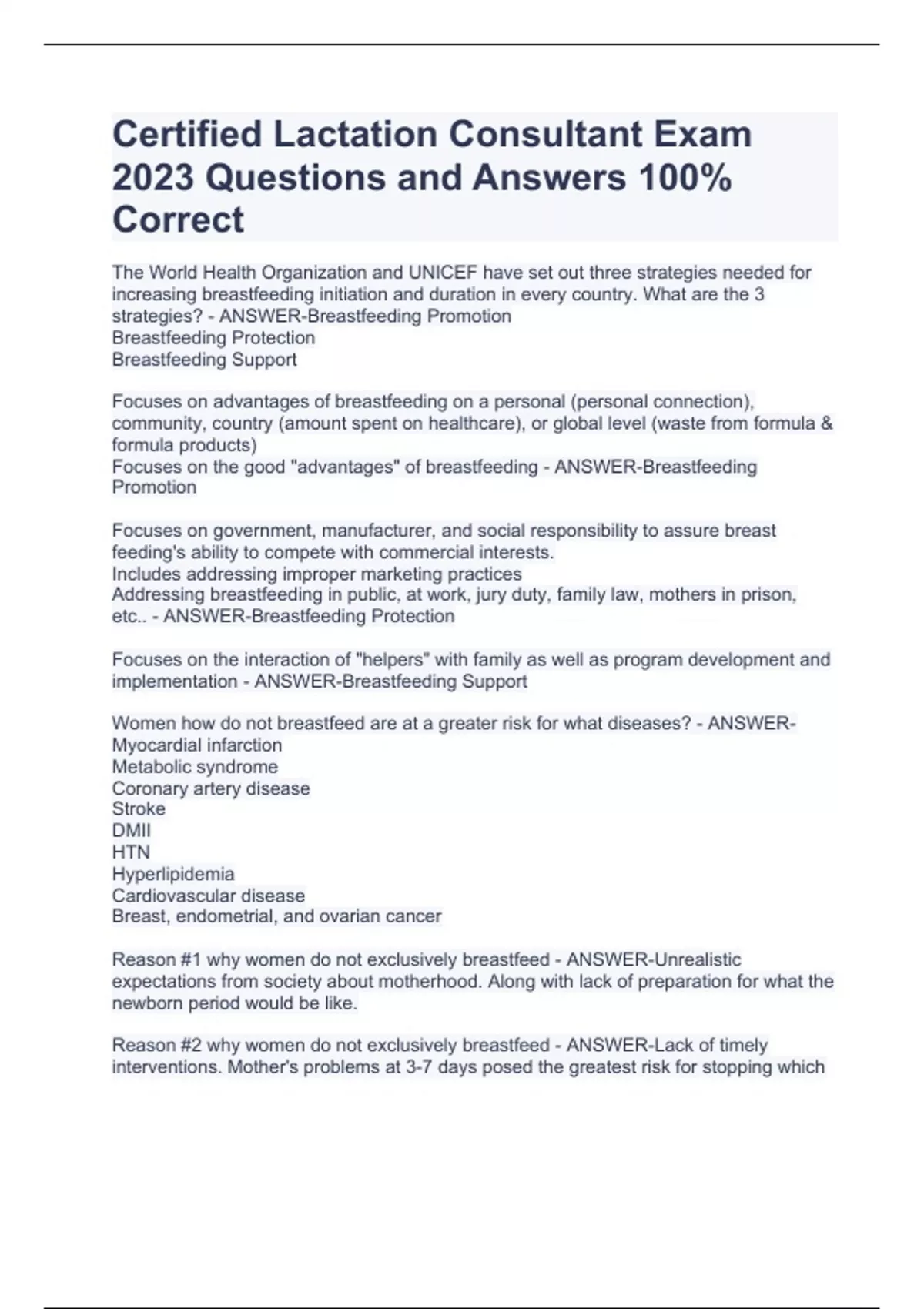 Certified Lactation Consultant/Counselor (CLC) Exam Bundle with Complete SolutionsCertified Lactation Consultant/Counselor (CLC) Exam Bundle with Complete SolutionsCertified Lactation Consultant/Counselor (CLC) Exam Bundle with Complete Solutions