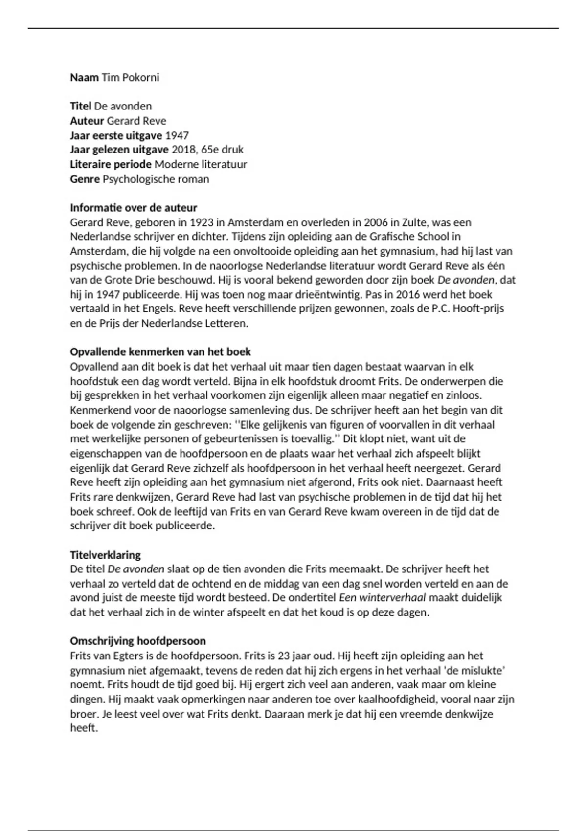 Boekverslagen van: - De avonden (Gerard Reve) - De nachtstemmer (Maarten ’t Hart) - De stille kracht (Louis Couperus) - Erik of het klein insectenboek (Godfried Bomans) - Fabriekskinderen (Jacob Jan Cremer) - Het lot van de kikker (Toon Tellegen) - Het theater, de brief en de waarheid (Harry Mulisch) - Het wederzijds huwelijksbedrog