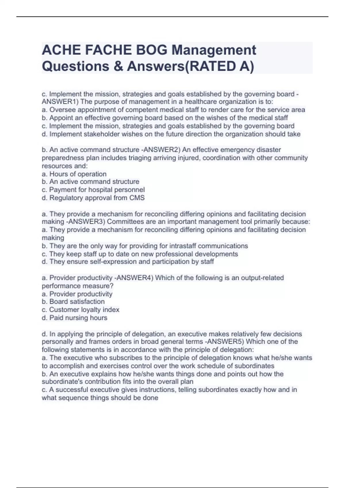 ACHE FACHE BOG EXAM(RATED A)