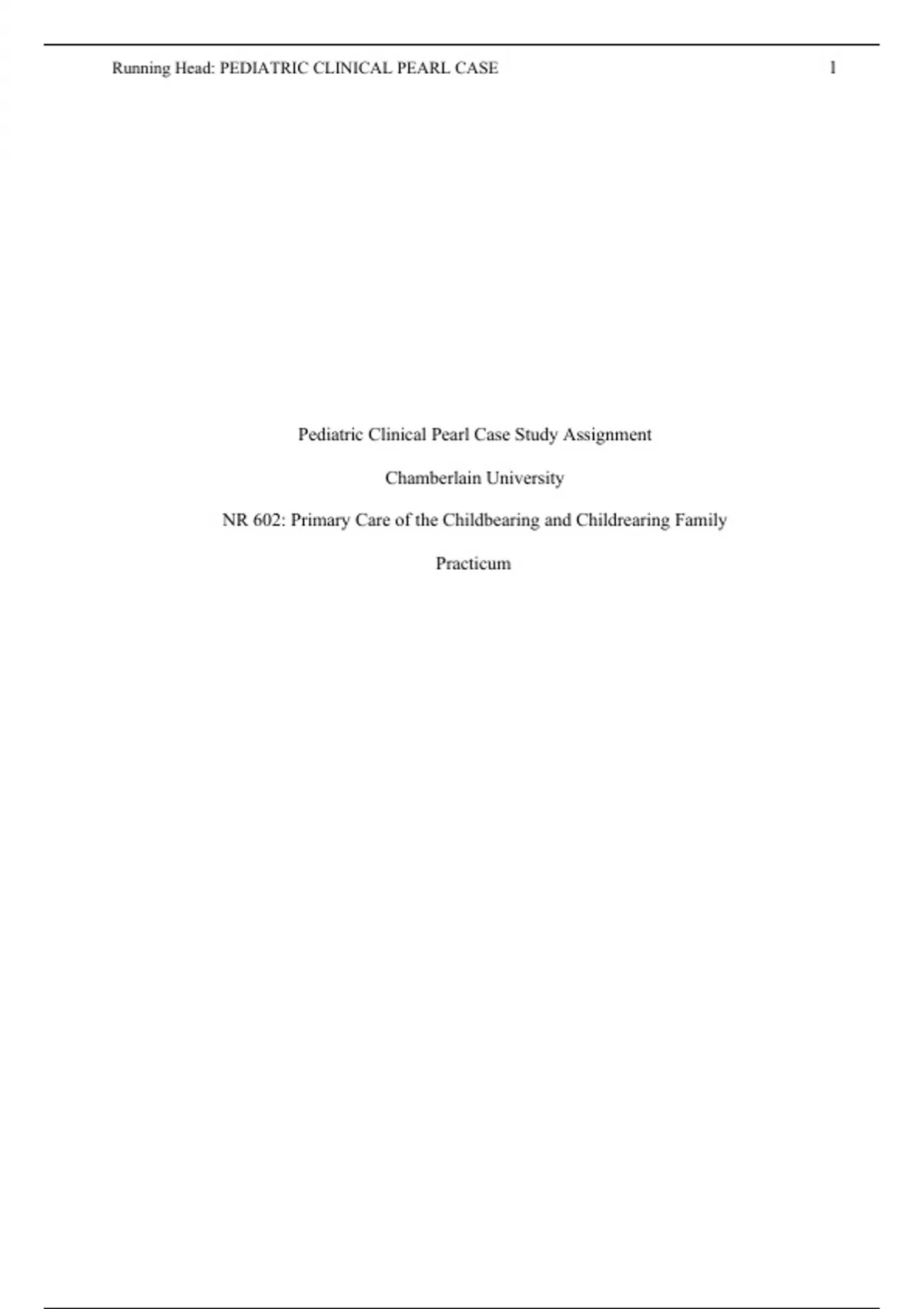 NR 602 Week 4 Pediatric Clinical Pearl Case Study Assignment, NR 602 -Primary Care of the Childbearing and Childrearing Family, Chamberlain