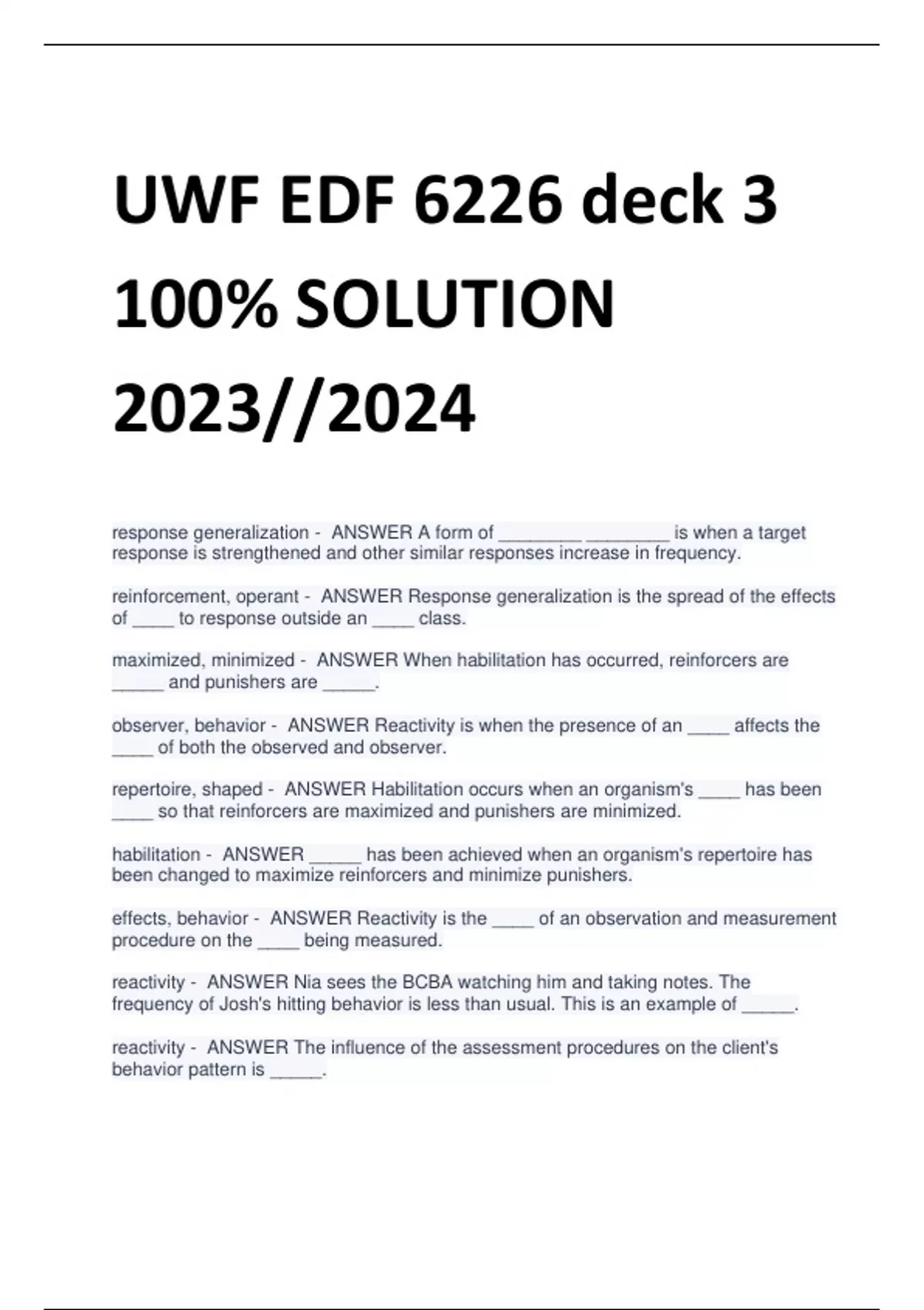 UWF EDF 6226 deck 3 /UWF EDF 6226 Modules 1,2,3,5,6 GN/ UWF EDF6226 deck 2 SOLUTIONS