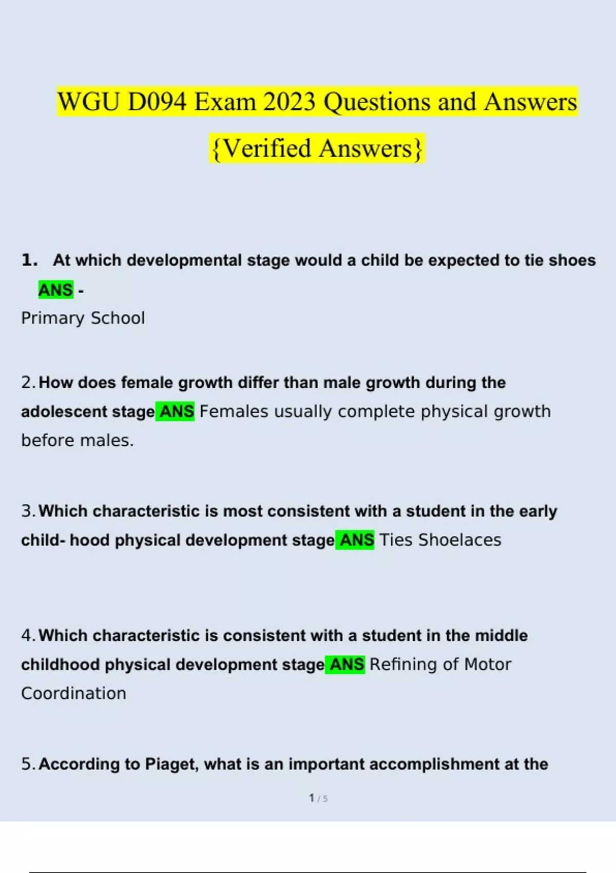 WGU D094 Exam 2023 Questions and Answers {Verified Answers}