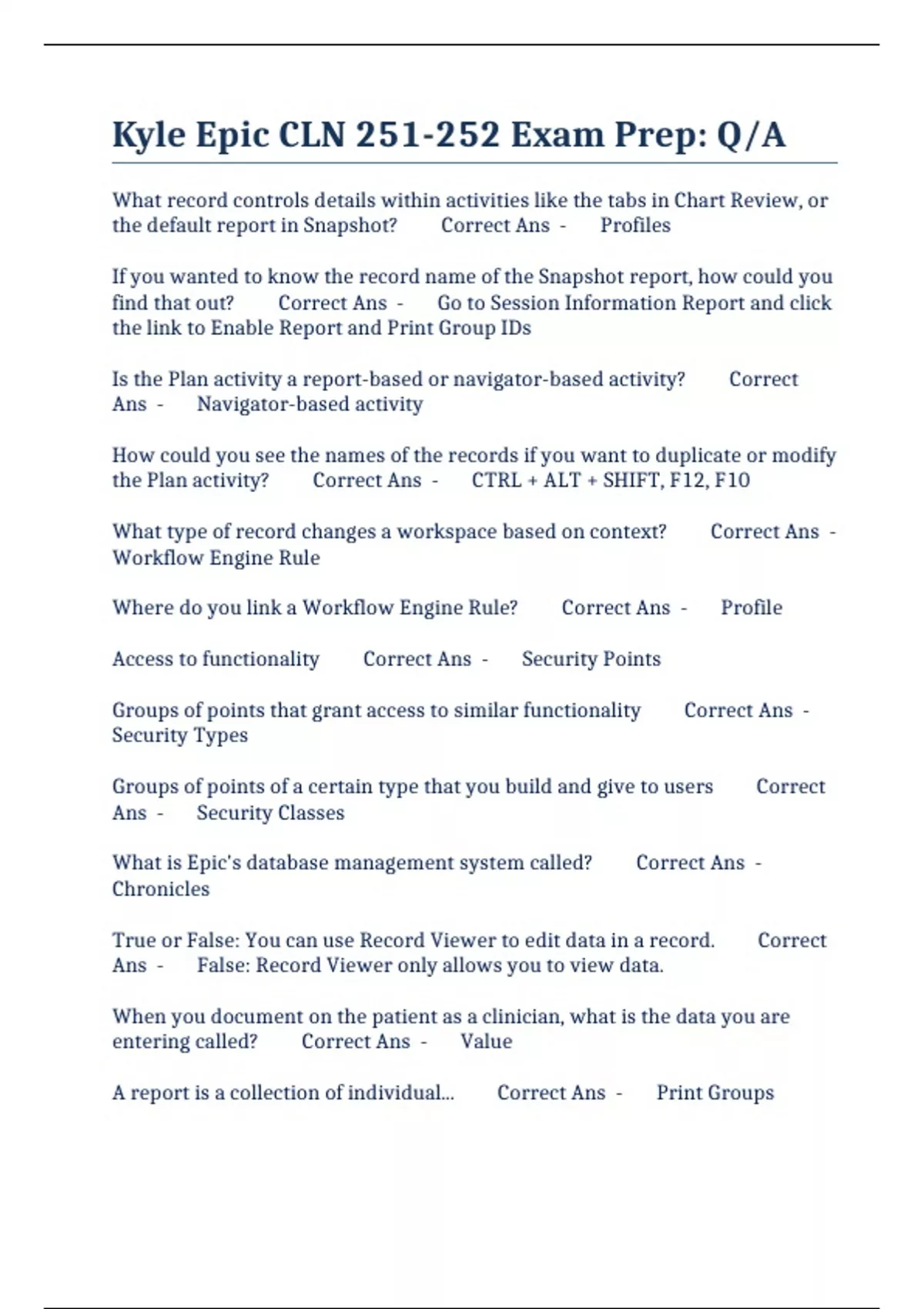 BUNDLE:: CLN 251/252 EXAMS COMPILED