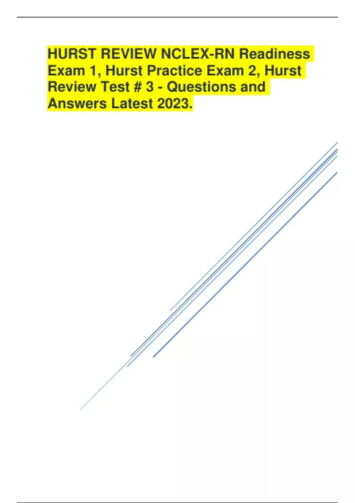 HURST REVIEW NCLEX-RN Readiness Exam 1, Hurst Practice Exam 2, Hurst Review Test # 3 - Questions and Answers Latest 2023.