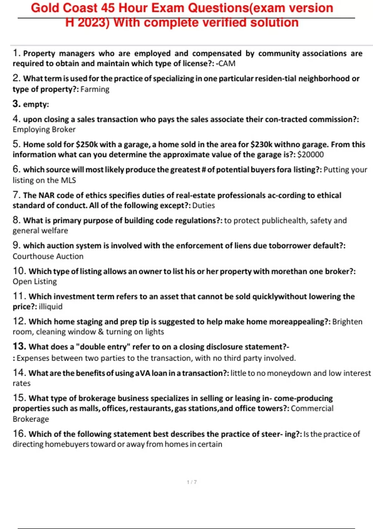 Gold Coast real estate Bundled Exams l Verified solutiona l Graded A +