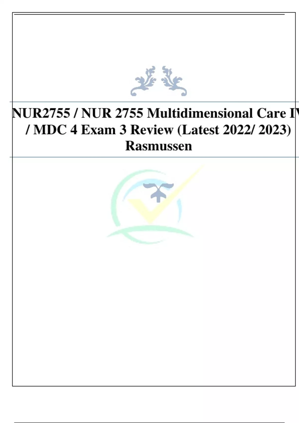 NUR2755 / NUR 2755 MULTIDIMENSIONAL CARE IV FINAL EXAM ,MDC EXAM 3 REVIEW BUNDLE