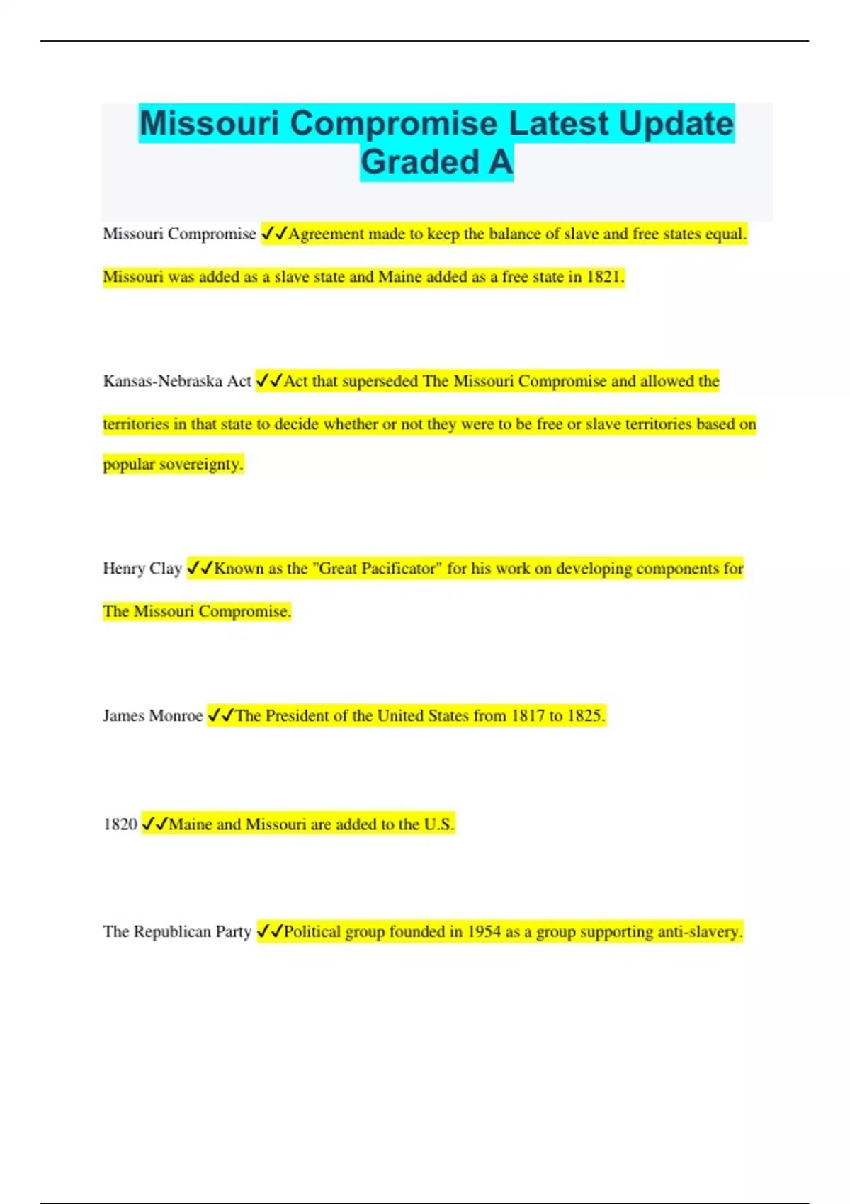 Missouri Compromise Bundled Exams 2022/2023 with Certified Solutions