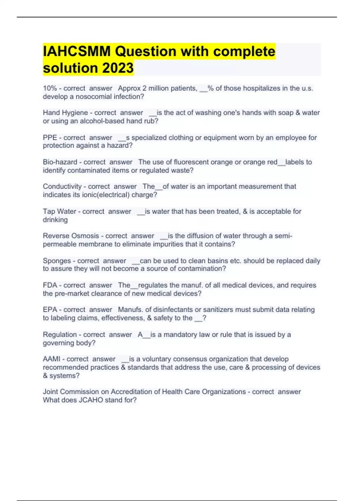 PACKAGE DEAL OF IAHCSMM QUESTION AND ANSWER RATED A 2023