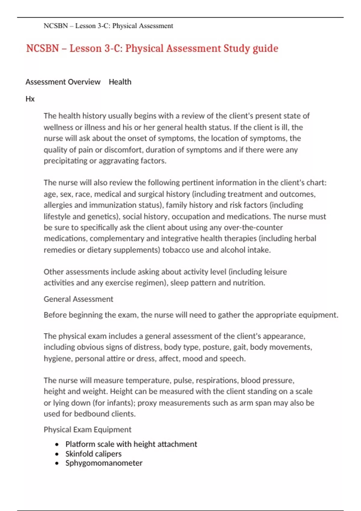 NCSBN - Lesson 3: Health Promotion & Maintenance Study Guide,NCSBN Lesson 3B: Growth & Development Questions with Answers Study Guide &NCSBN – Lesson 3-C: Physical Assessment Study guide