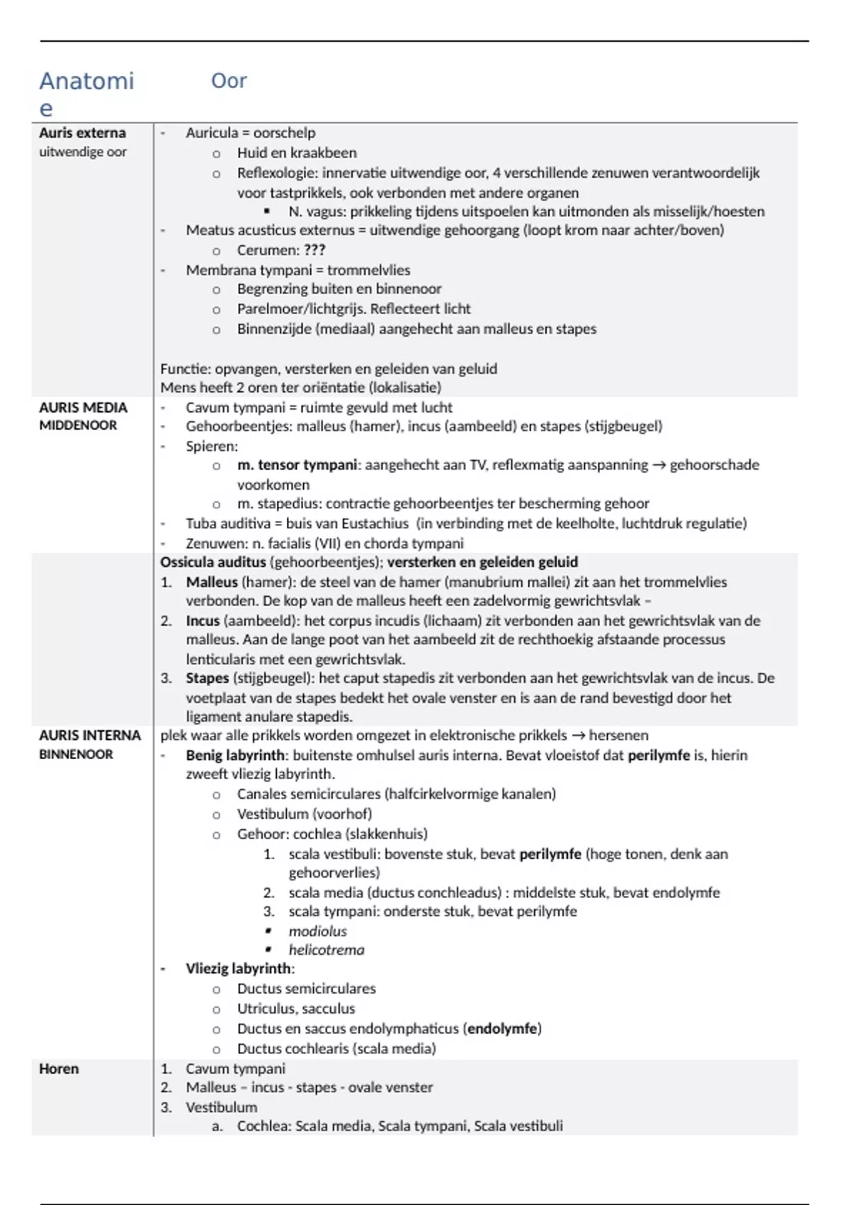 Less = more! Kort en bodige samenvatting HOOFD-HALS anatomie