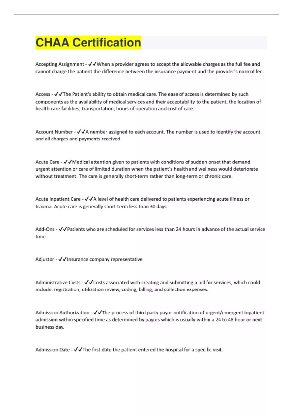 Bundle for CHAA Certification tests compilation | everything you need | verified