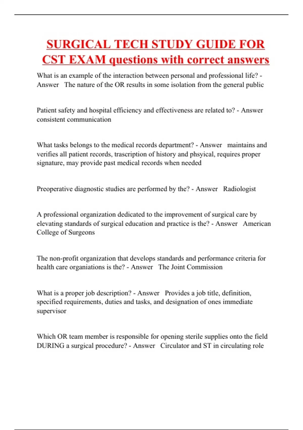 SURGICAL TECHNOLOGIST Bundle Test
