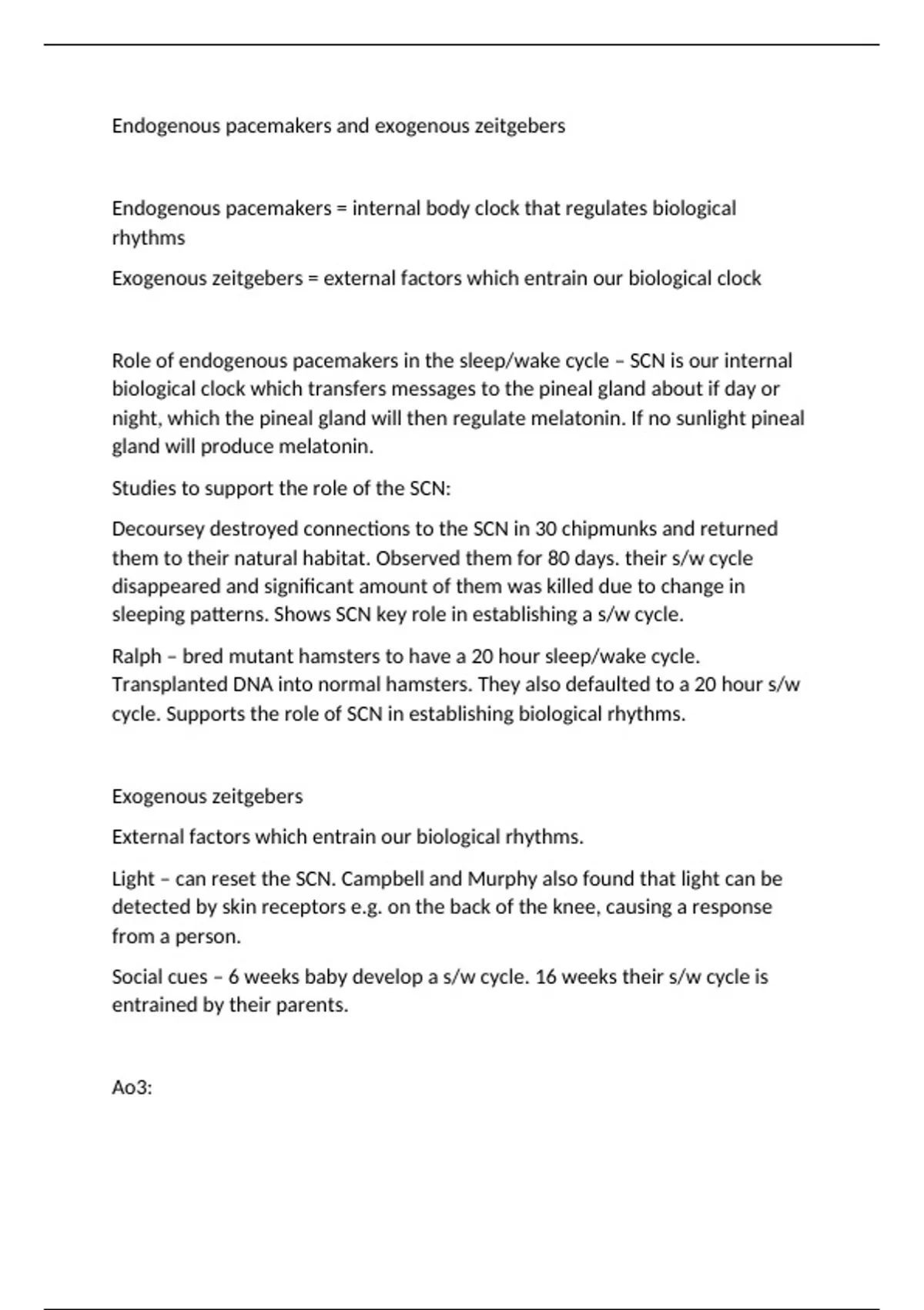 Biopsychology notes that gained me an A* at A Level. Created using textbooks, mark schemes, class notes and my own further research to provide a comprehensive set of notes. This is formatted according to the AQA psychology specification, where each point is covered, but regardless of the exam board, it provides a detailed set of notes.