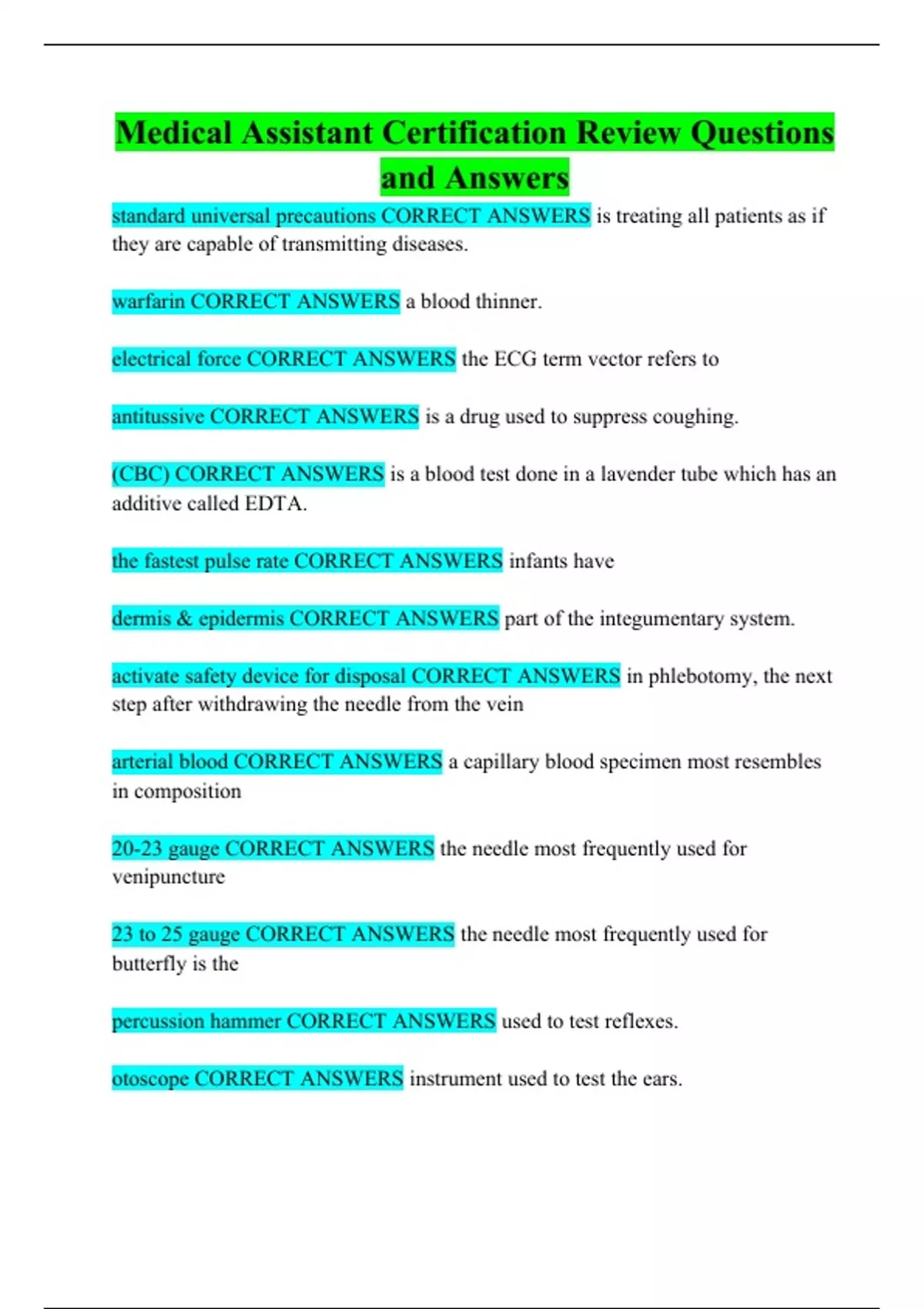 Medical Assistant Certification Review Questions and Answers Certified Medical Assistant Practice Exam Test Answered correctly!! Medical Assistant Certification Exam Questions and complete solutions Medical Assistant Certification Exam Questions and complete solutions Medical Assistant Certification Test with complete solutions