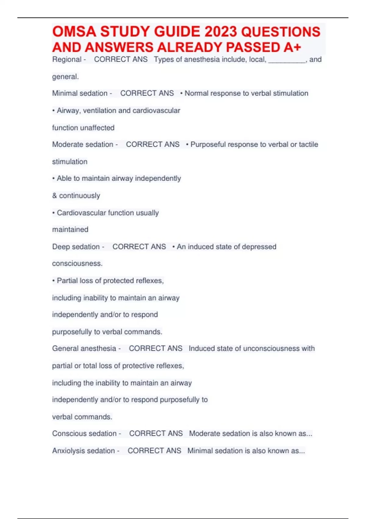 STUDY OMSA 2020/ OMSA 2021/ OMSA (EXAM #3)/ OMSA (EXAM #2)/ OMSA (EXAM #1)/ OMSA FALL 2018 PRACTICE TEST / OMSA FINAL REVIEW/ OMSA MIDTERM 2 / OMSA RECERTIFICATION PRACTICE TEST/ OMSA STUDY GUIDE