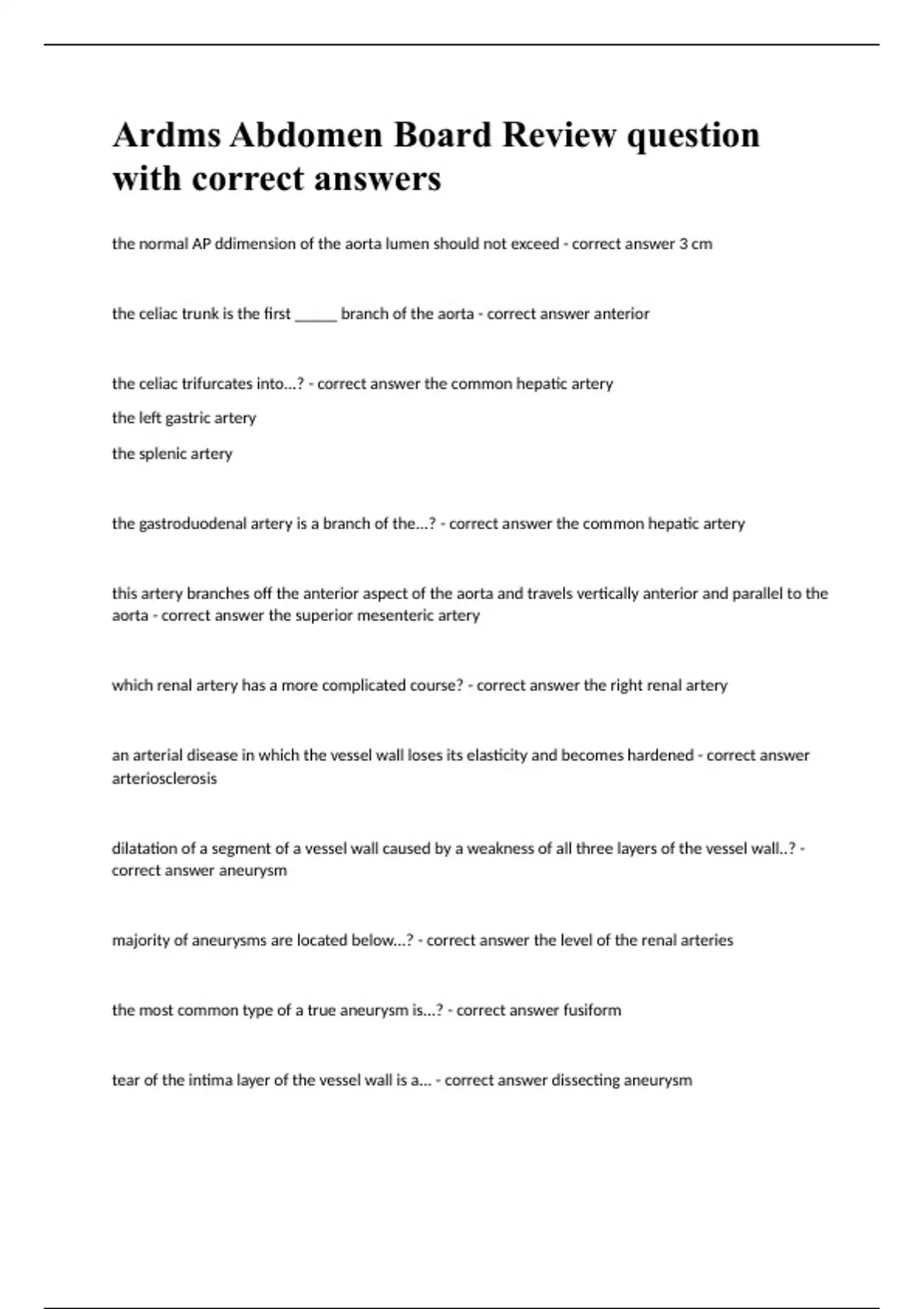 1 Exam (elaborations) ARDMS exam prep question with complete solution rated A+ 2023 Verified 2 Exam (elaborations) Abdomen ARDMS _ MOCK exam question with well answered solution 2023 3 Exam (elaborations) ARDMS Abdomen Study guide question with answer 2023 4 Exam (elaborations) Questions Abdomen ARDMS Exam correctly answered rated A+ 2023 5 Exa