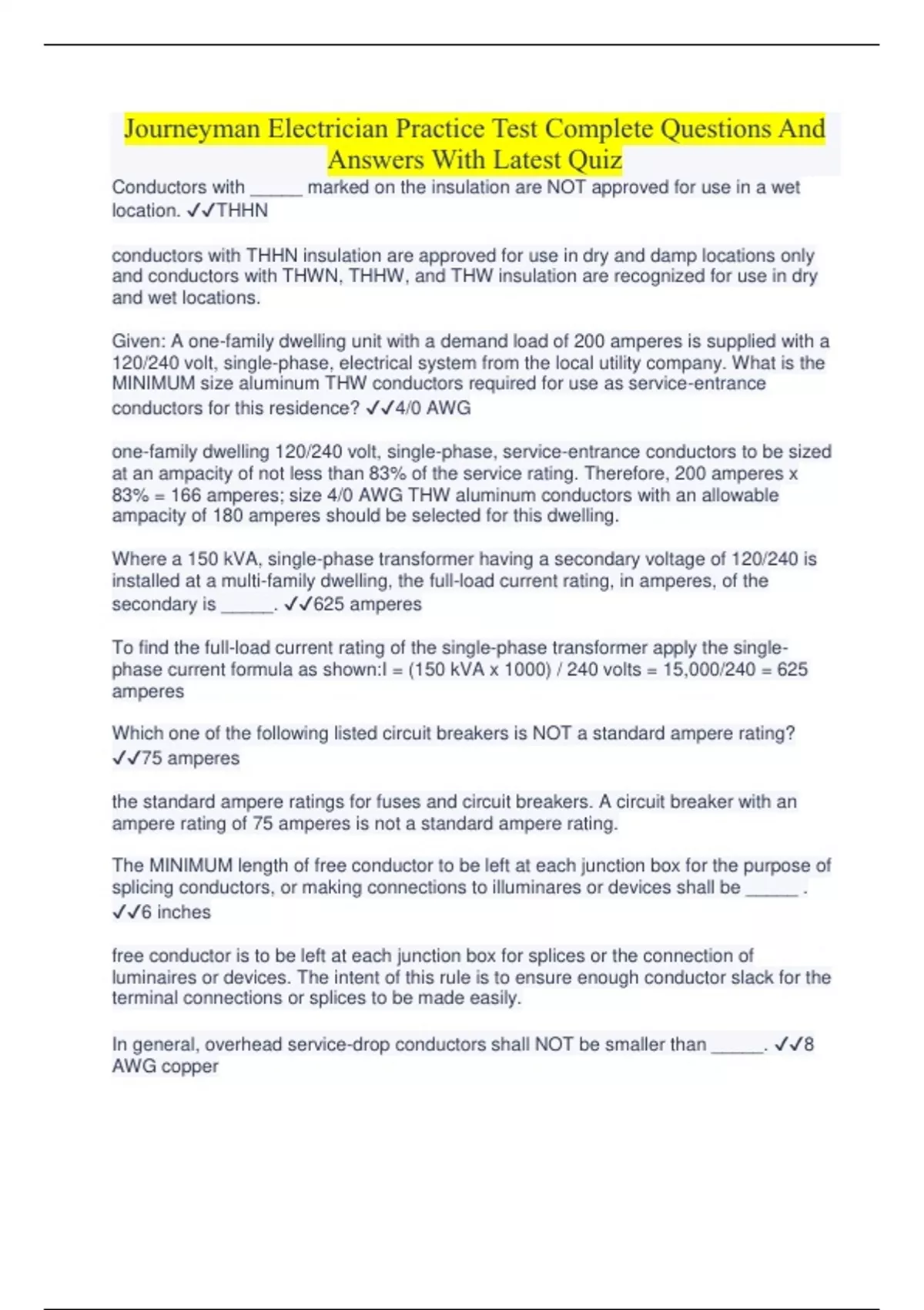Journeyman Electrician Exam 2023 STUDY BUNDLE EXAM PACK Verified SOLUTION (questions and answers)