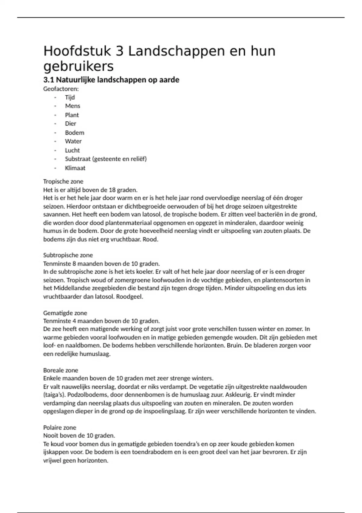 Samenvatting De Geo Systeem aarde hoofdstuk 3 landschappen en hun gebruikers