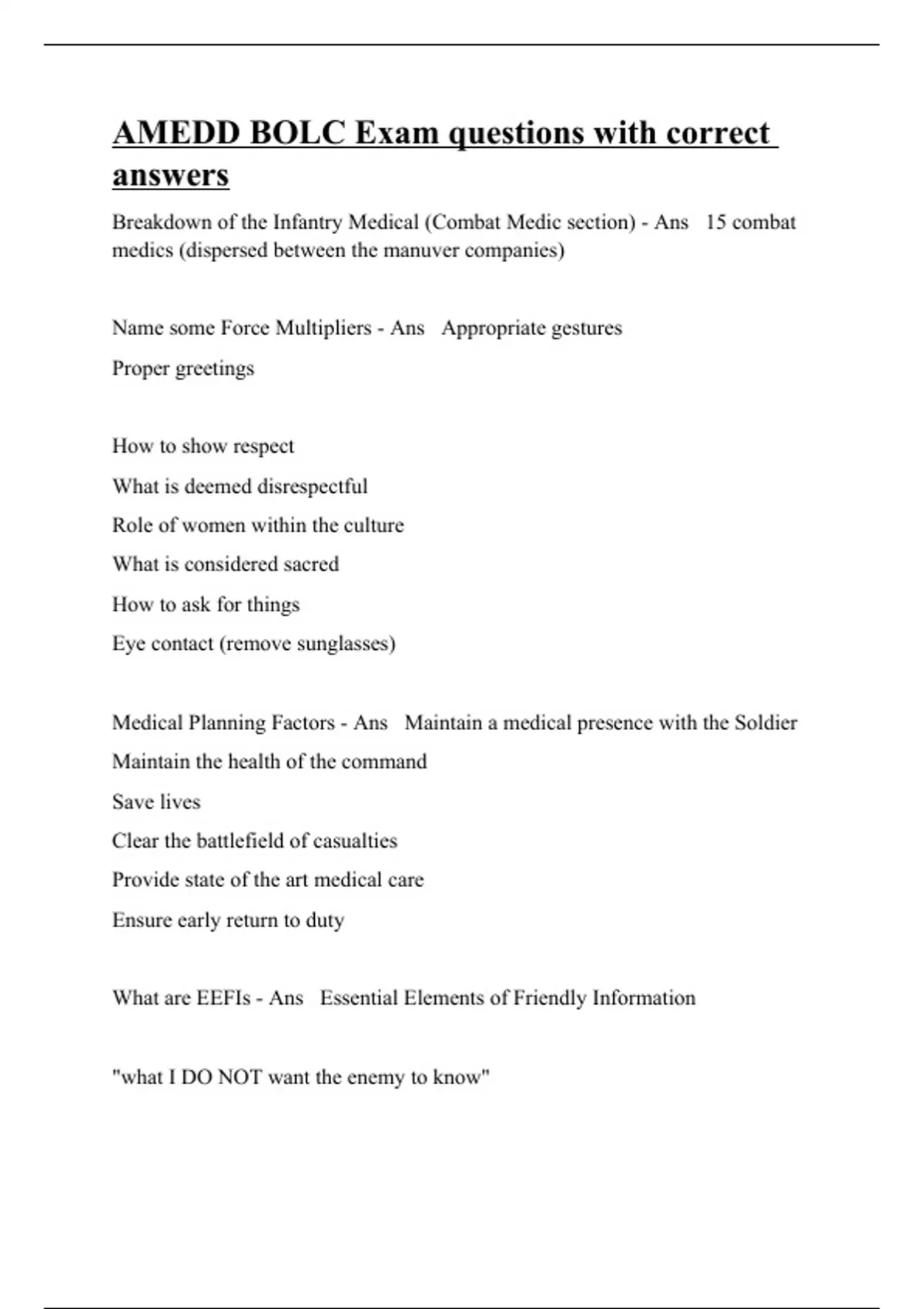 AMEDD Final exam review questions with correct answers