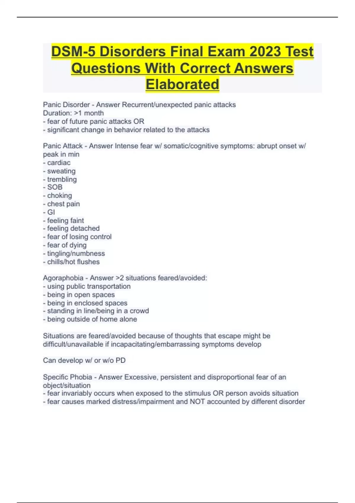 DSM-5 Disorders Final Exam 2023 Test Questions With Correct Answers Elaborated