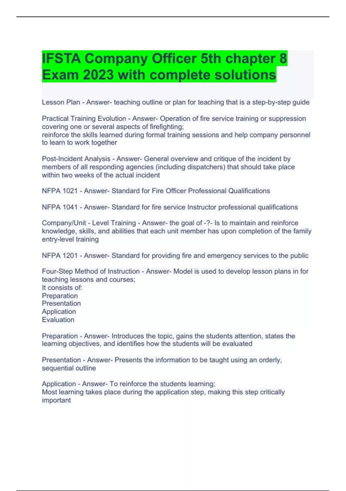 IFSTA Company Officer 5th chapter 8 Exam 2023 with complete solution IFSTA Company Officer 5th Chapter 10 Questions and Answers IFSTA Company Officer Ch. 4 Exam Questions with correct Answers IFSTA Company Officer 5th chapter 9 Exam 2023 company officer 6th edition chapter 11 Incident Management Exam Fire Officer 1 - Multiple Choice Exam (Graded A)