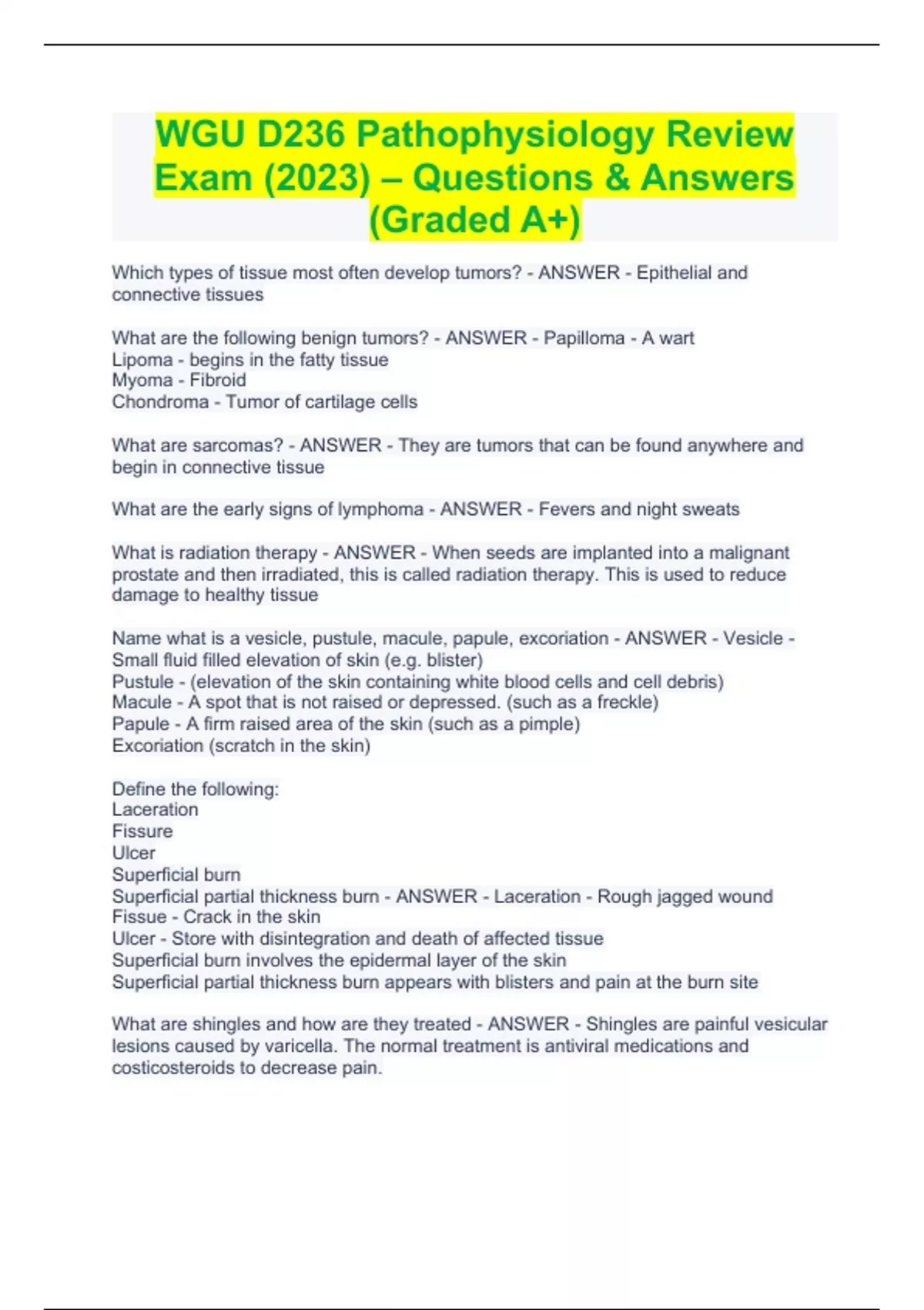 WGU D236 Pathophysiology Exam Bundle ( Update) | With Questions & Answers (100% Correct)