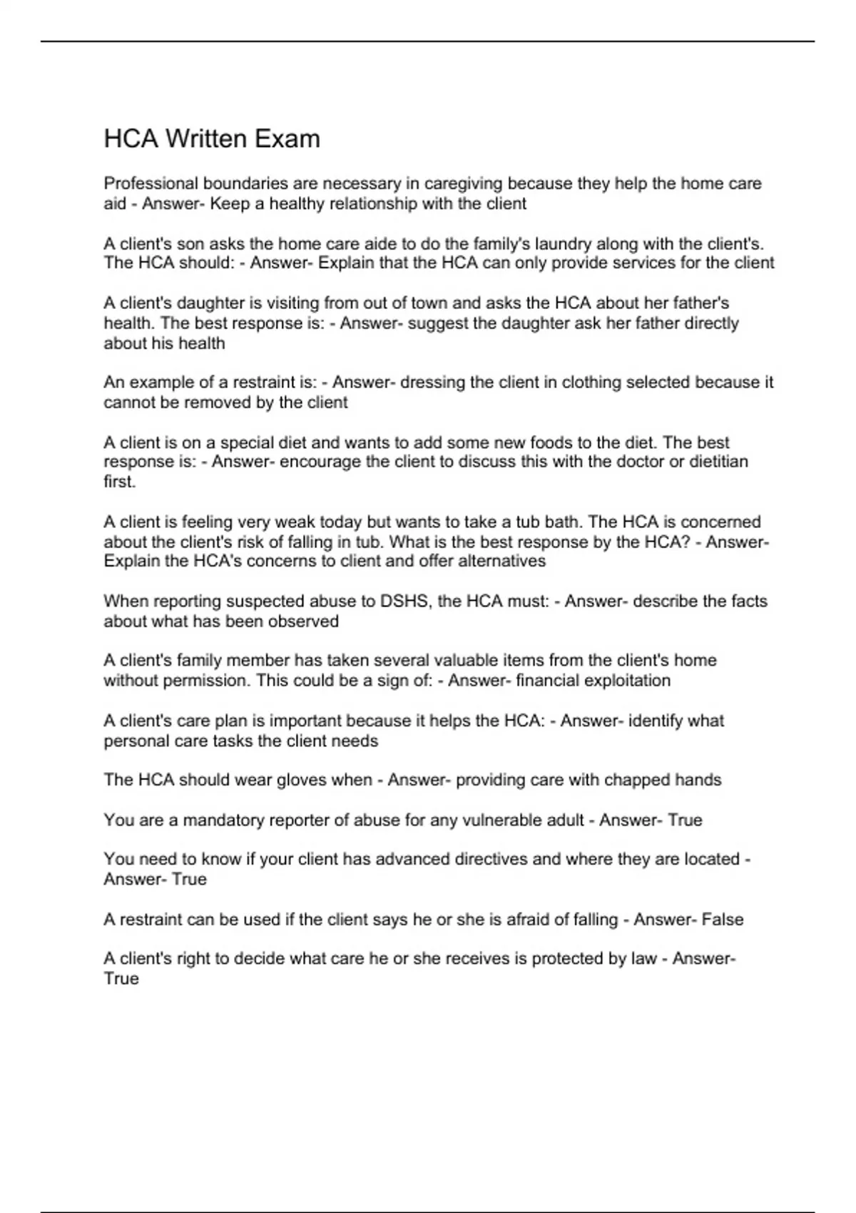 1 Exam (elaborations) HCA Written Exam Q&A 2023 2 Exam (elaborations) HCA practice test Q&A 2023 3 Exam (elaborations) HCA 100 Prep for Quiz 1 4 Exam (elaborations) HCA 285 Exam #1 QUESTIONS AND ANSWERS 5 Exam (elaborations) HCA Practice QUESTIONS AND