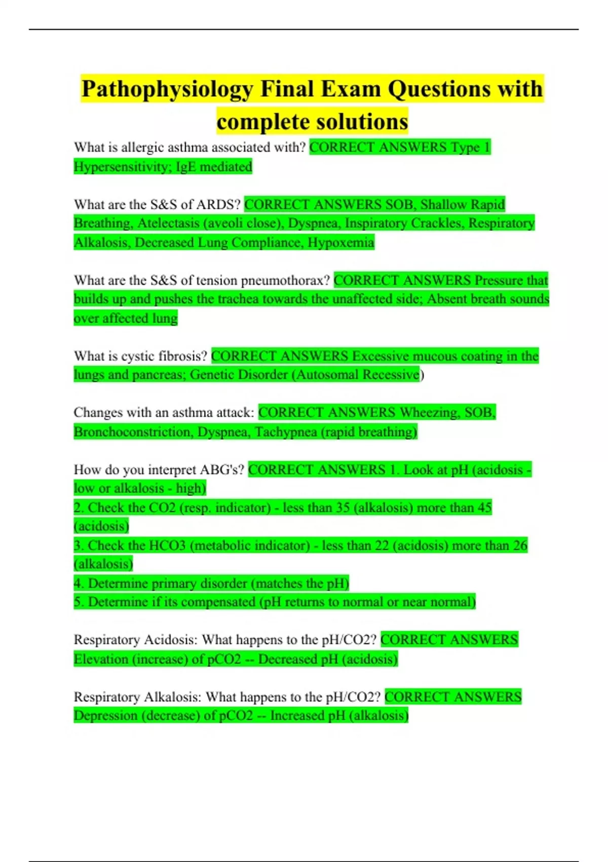 (Pathophysiology) Practice Exam with all Answers correct Pathophysiology Exam 1 Practice Problems Questions and correct Answers Pathophysiology Practice Exam 1 Questions and Answers Hesi Pathophysiology Practice Exam Questions with verified Answers