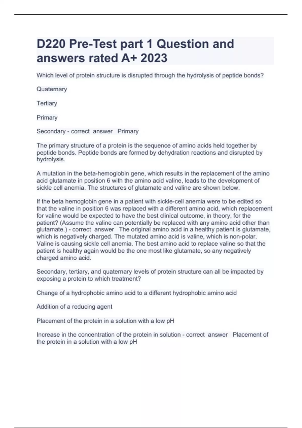 BUNDLE OF WGU D220 QUESTION AND ANSWERS SOLVED 2023