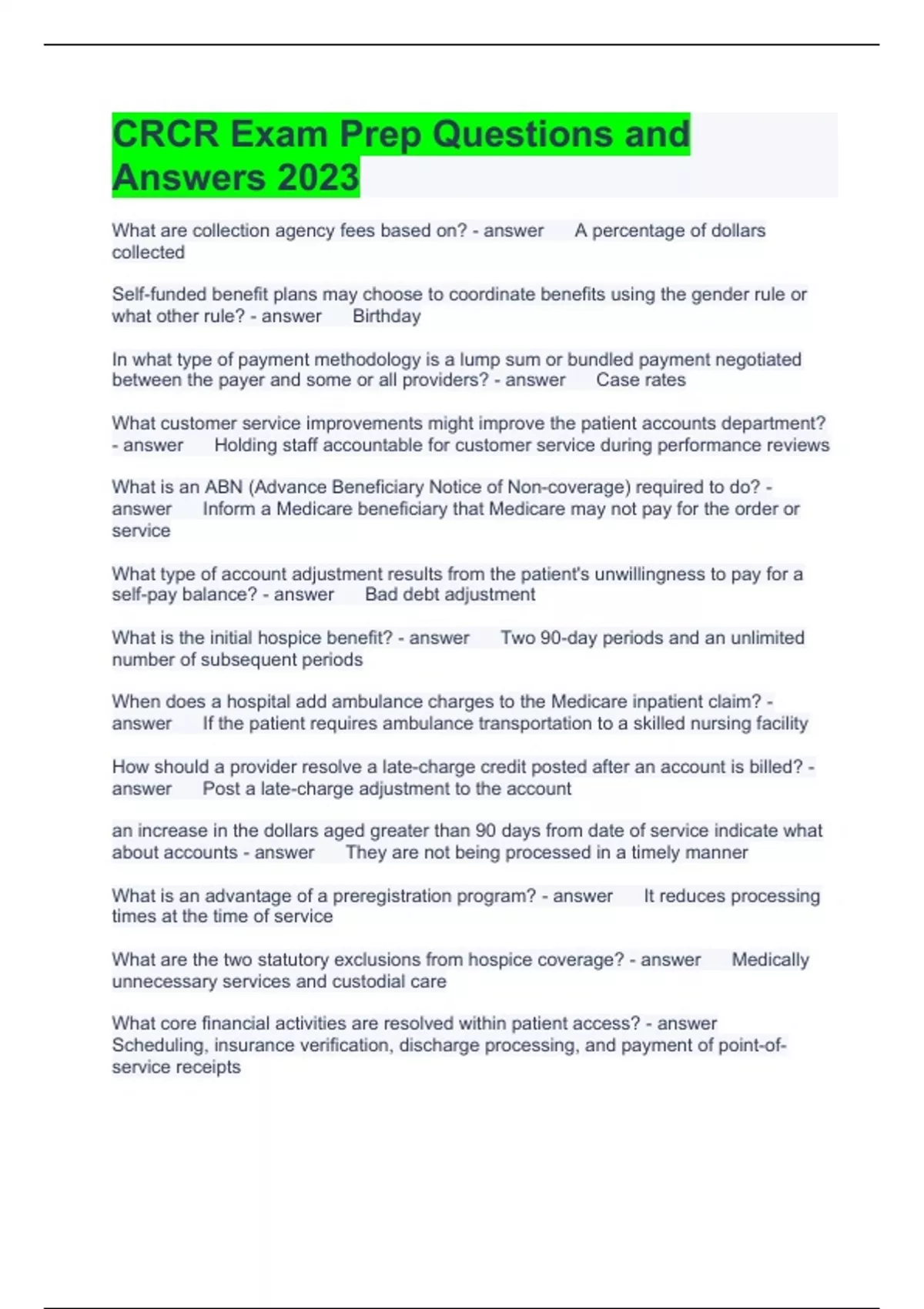 HFMA CRCR Exam Topics Questions and Answers 2023