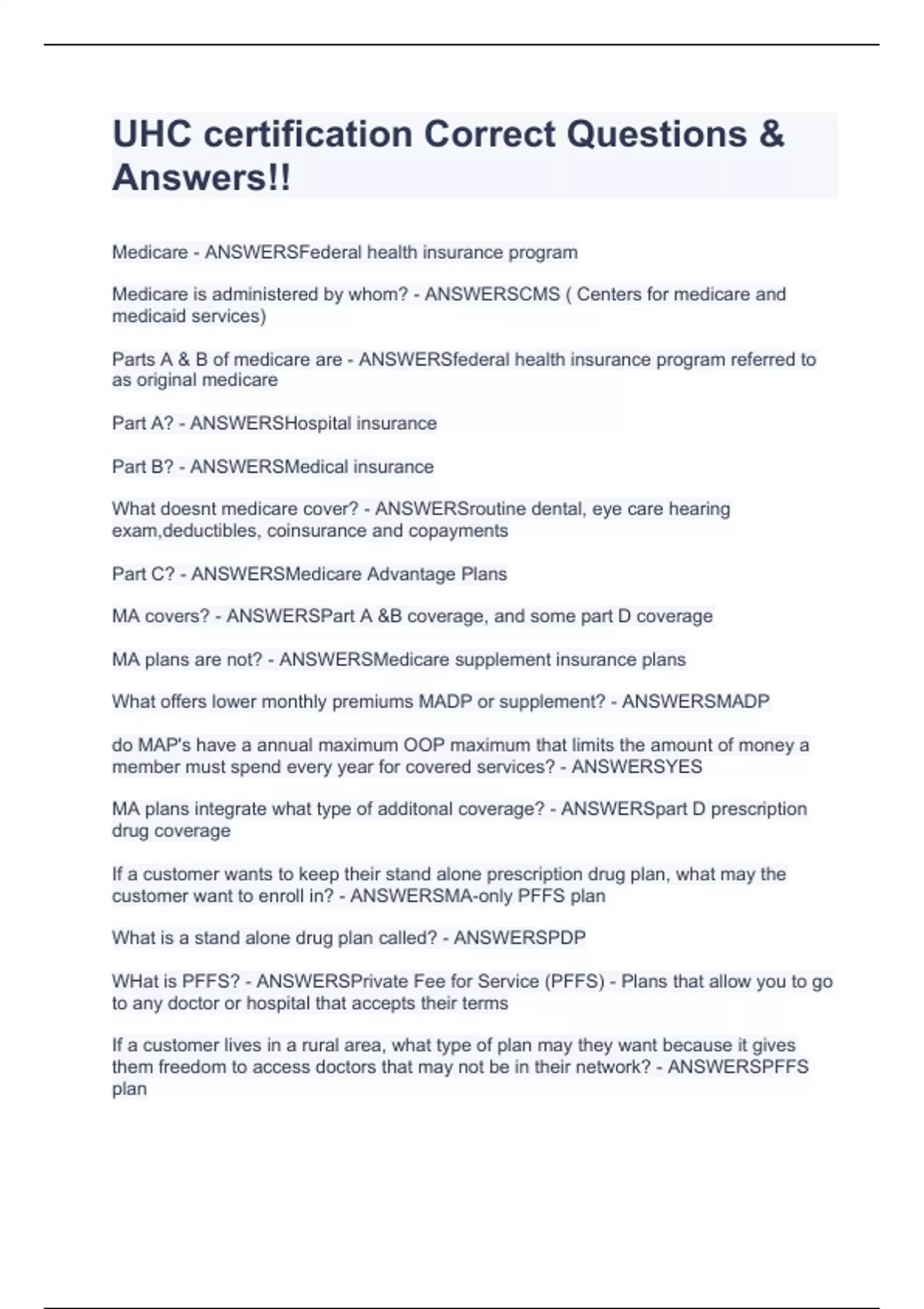 2023 UHC certifications Correct Questions & Answers!!(COMPLETE SOLUTION PACK)2023 UHC certifications Correct Questions & Answers!!(COMPLETE SOLUTION PACK)2023 UHC certifications Correct Questions & Answers!!(COMPLETE SOLUTION PACK)2023 UHC certifications Correct Questions & Answers!!(COMPLETE SOLUTION PACK)