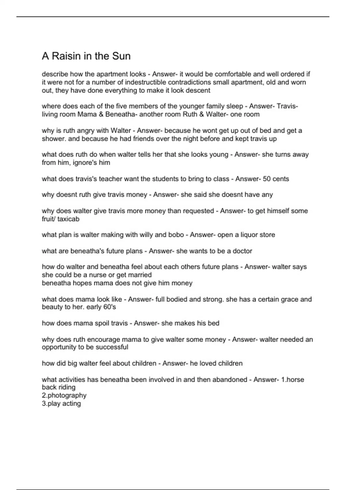 A Raisin in the Sun/A Raisin in the Sun Q&A/Raisin in the Sun Studyguide/A Raisin in the Sun Questions And Answers/A Raisin in the Sun Act 1/A raisin in the sun act 2/A Raisin in the Sun/A Raisin In The Sun Review/A Raisin in the Sun Questions And Answers
