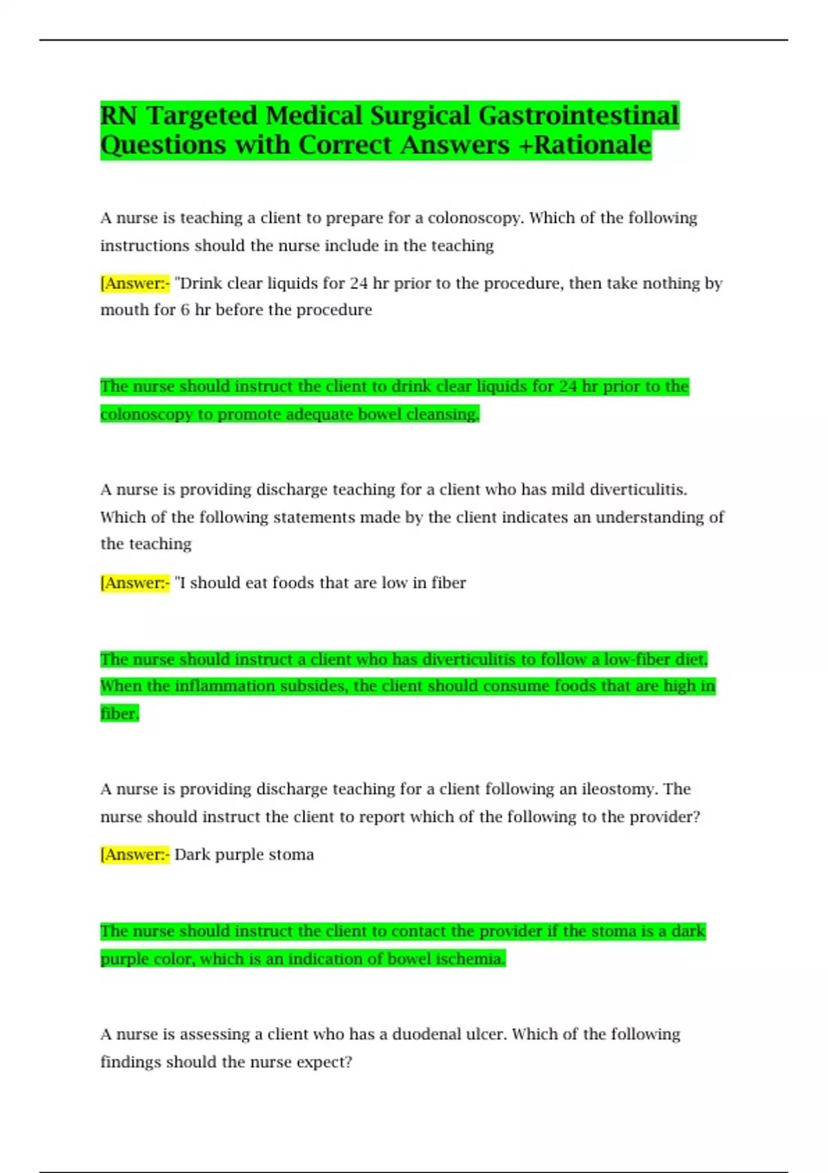 (Complete) RN Targeted Medical Surgical Gastrointestinal Questions with Correct Answers +Rationale