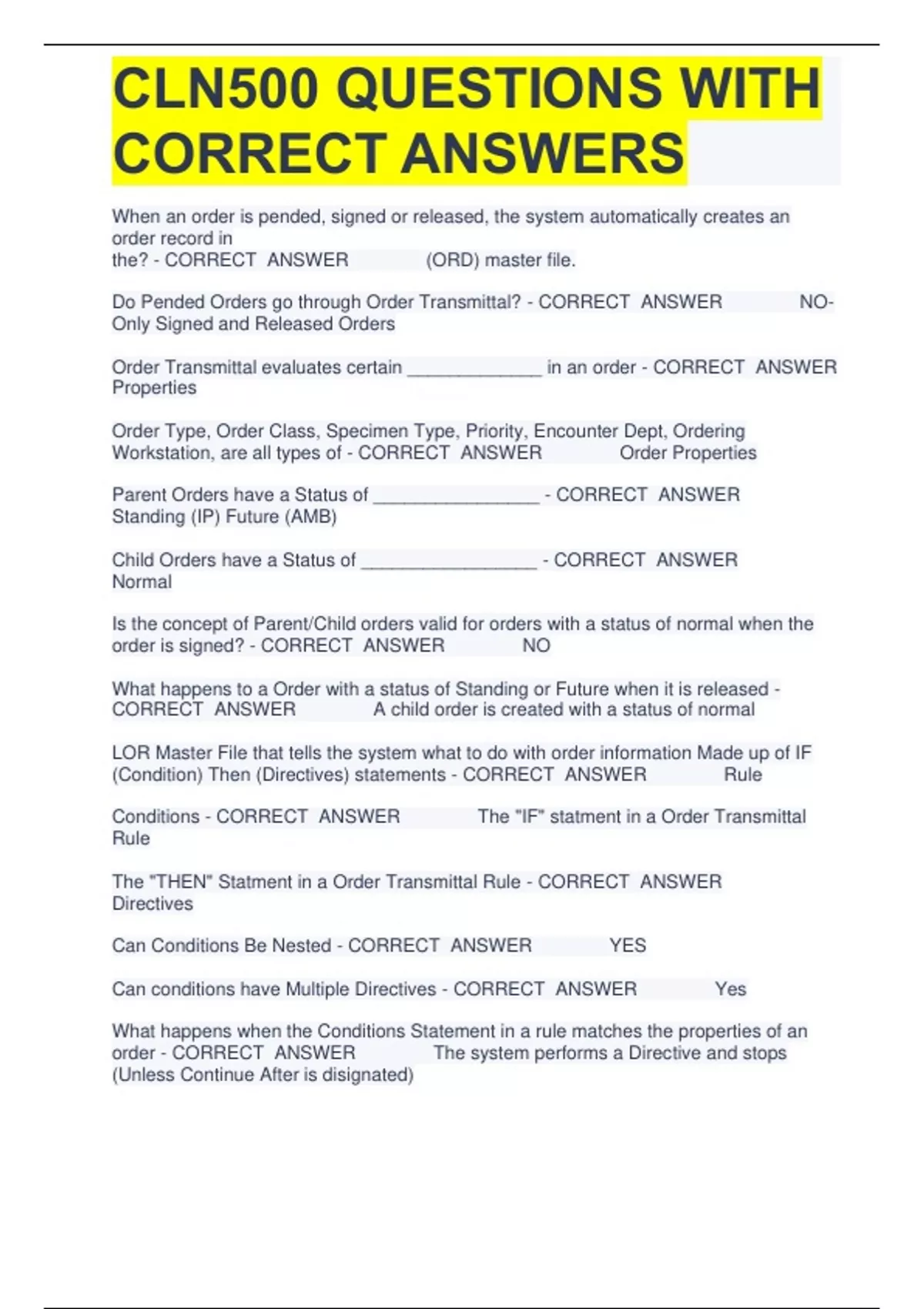 1 Exam (elaborations) CLN500 Order Transmittal Exam Questions With Answers 2 Exam (elaborations) CLN 500 Order Transmittal Exam Questions With Correct Answers 3 Exam (elaborations) CLN500 QUESTIONS WITH CORRECT ANSWERS