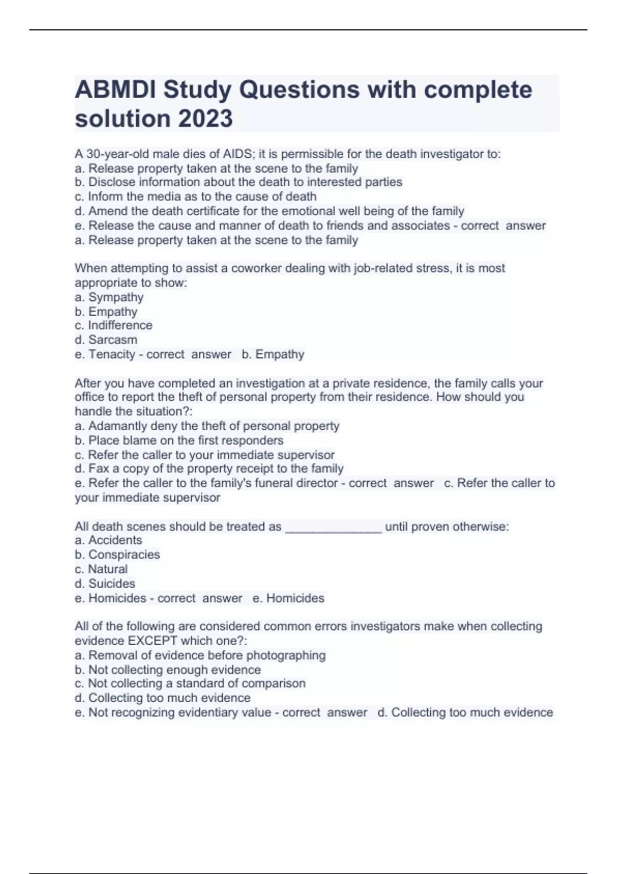Exam (elaborations) MDI & FP Quiz #1/MIDTERM Weeks 1-7 Question and answers already passed 2023 Exam (elaborations) Exam 1 Abmdi Question and answers 100% correct 2023 Exam (elaborations) The Role of the Police Officer, The Forensic Death Investigator, The Crime Scene Investigator and the Forensic Pathologist Question and answers correctly solv