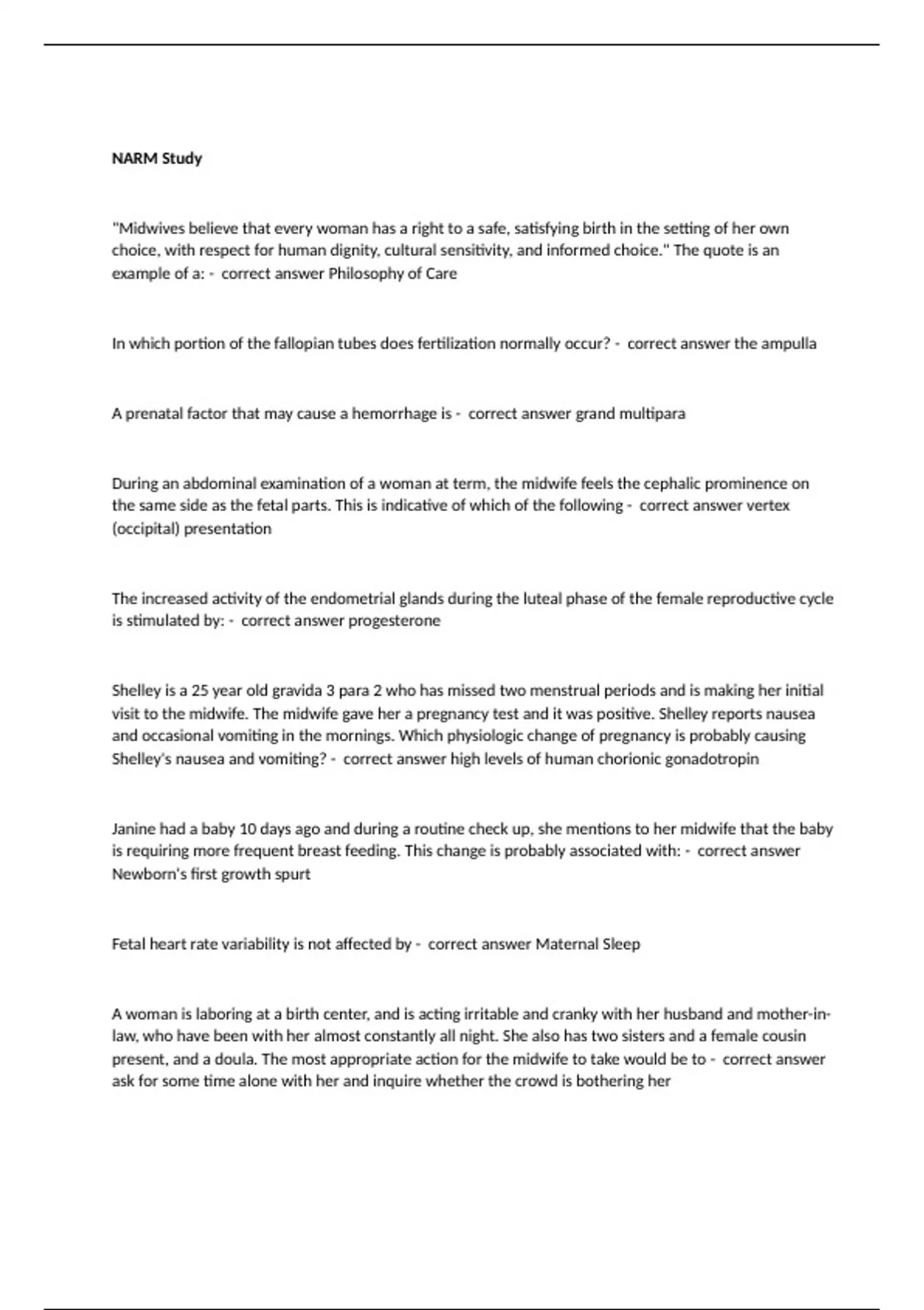 Midwifery NARM questions and 100% correct answers NARM CPM questions and verified correct answers