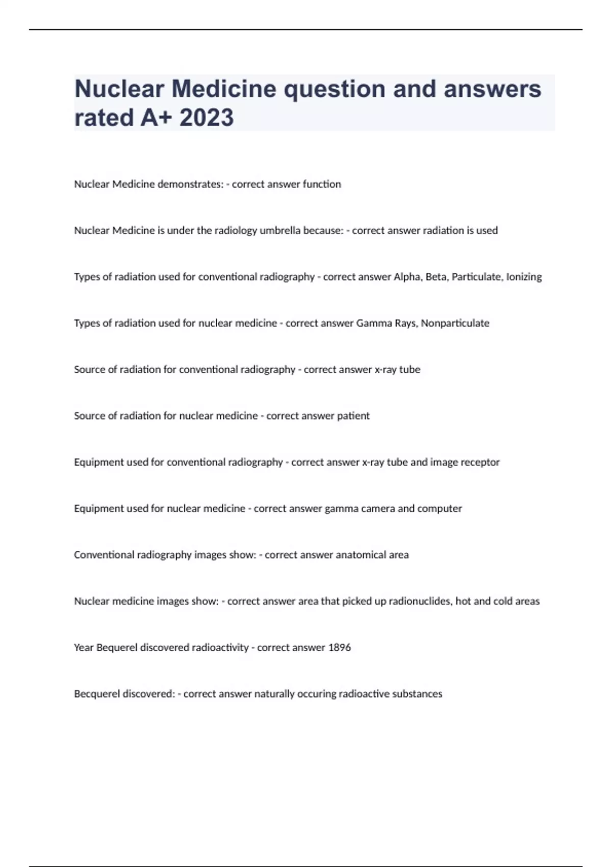 Package deal for NUCLEAR MEDICINE EXAM 2023 fully solved