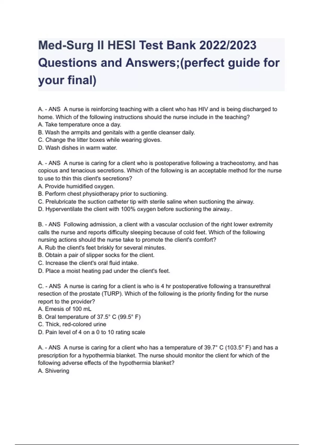 Med-Surg II HESI Test Bank 2022/2023 Questions and Answers; The (perfect guide for your final)