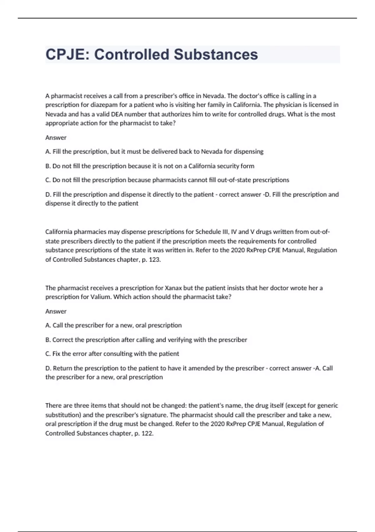 CPJE law exam 2023 with 100% correct answers CPJE Pharmacy Practice exam 2023 with 100% correct answers