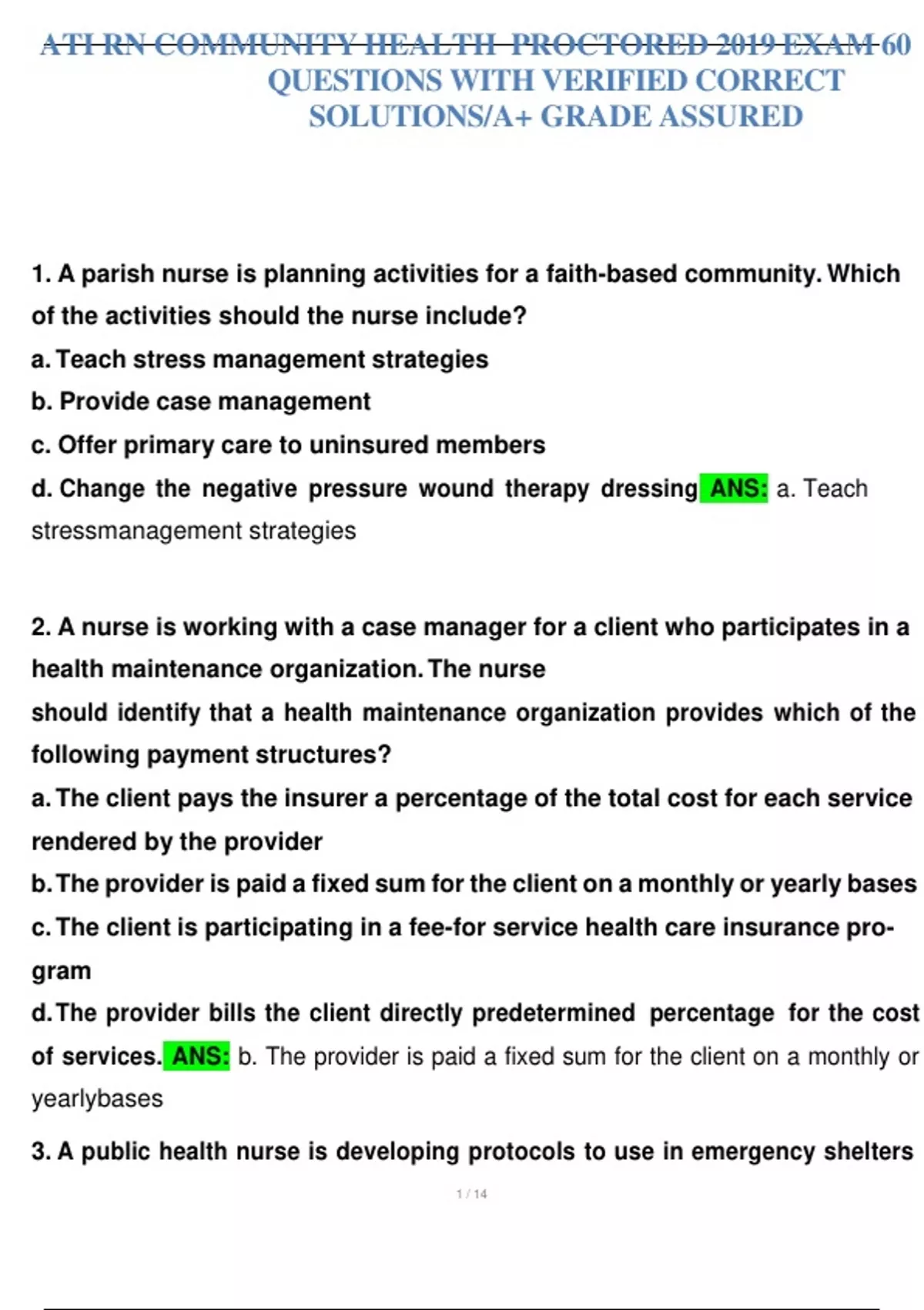 ATI RN COMMUNITY HEALTH PROCTORED 2019 EXAM 60 QUESTIONS WITH VERIFIED CORRECT SOLUTIONS/A+ GRADE ASSURED ATI RN COMMUNITY HEALTH PROCTORED 2019 EXAM 60 QUESTIONS WITH VERIFIED CORRECT SOLUTIONS/A+ GRADE ASSURED