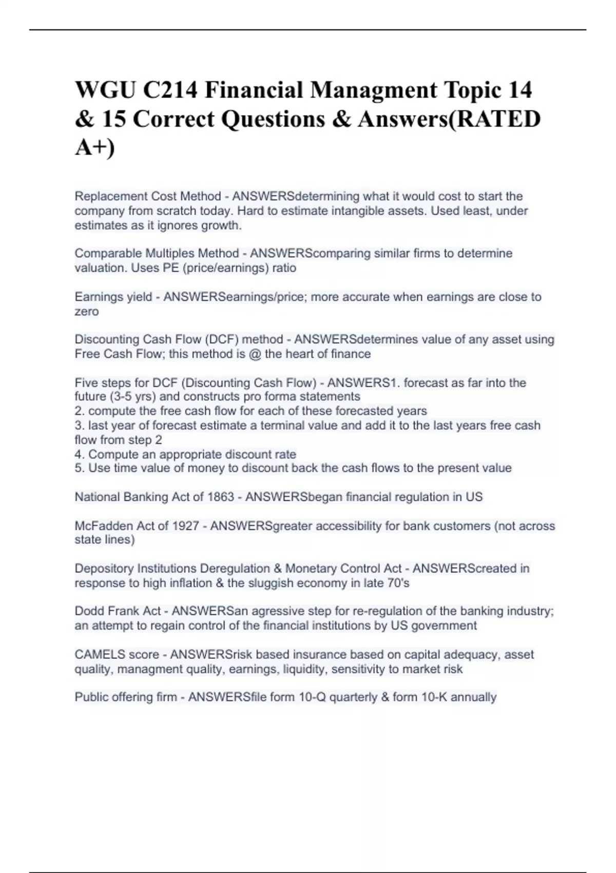 WGU C214 Financial Managment Topic 14 & 15 Correct Questions & Answers(RATED A+)